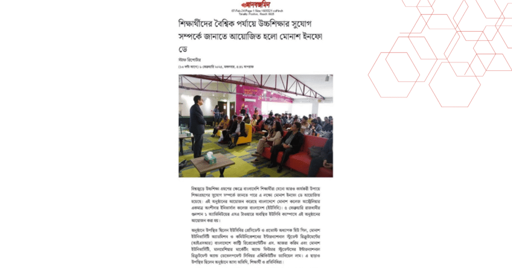 শিক্ষার্থীদের বৈশ্বিক পর্যায়ে উচ্চশিক্ষার সুযোগ সম্পর্কে জানাতে আয়োজিত হলো মোনাশ ইনফো ডে