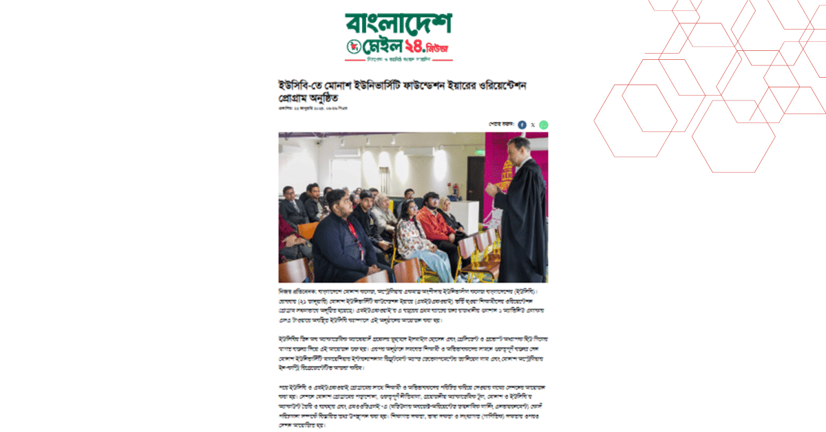 বাংলাদেশে মোনাশ কলেজ, অস্ট্রেলিয়ার একমাত্র অংশীদার ইউনিভার্সাল কলেজ বাংলাদেশের (ইউসিবি)। রোববার (২১ জানুয়ারি) মোনাশ ইউনিভার্সিটি ফাউন্ডেশন ইয়ারে (এমইউএফওয়াই) ভর্তি হওয়া শিক্ষার্থীদের ওরিয়েন্টেশন প্রোগ্রাম সফলভাবে অনুষ্ঠিত হয়েছে। এমইউএফওয়াই’র এ বছরের প্রথম ব্যাচের জন্য রাজধানীর গুলশান ১ অ্যাভিনিউ এলাকার এসএ টাওয়ারে অবস্থিত ইউসিবি ক্যাম্পাসে এই অনুষ্ঠানের আয়োজন করা হয়।