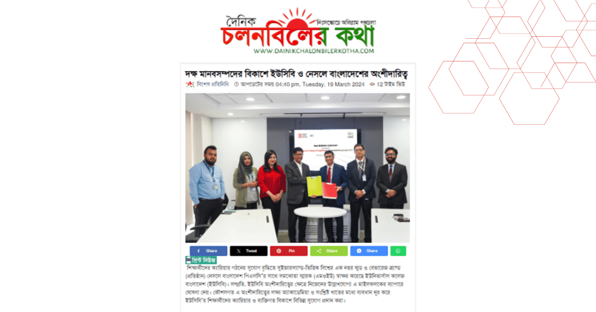 শিক্ষার্থীদের ক্যারিয়ার গঠনের সুযোগ বৃদ্ধিতে সুইজারল্যান্ড-ভিত্তিক বিশ্বের এক নম্বর ফুড ও বেভারেজ ব্র্যান্ড (প্রতিষ্ঠান) নেসলে বাংলাদেশ পিএলসি’র সাথে সমঝোতা স্মারক (এমওইউ) স্বাক্ষর করেছে ইউনিভার্সাল কলেজ বাংলাদেশ (ইউসিবি)। সম্প্রতি, ইউসিবি অংশীদারিত্বের ক্ষেত্রে নিজেদের উল্লেখযোগ্য এ মাইলফলকের ব্যাপারে ঘোষণা দেয়। কৌশলগত এ অংশীদারিত্বের লক্ষ্য অ্যাকাডেমিয়া ও সংশ্লিষ্ট খাতের মধ্যে ব্যবধান দূর করে ইউসিবি’র শিক্ষার্থীদের ক্যারিয়ার ও ব্যক্তিগত বিকাশে বিভিন্ন সুযোগ প্রদান করা।