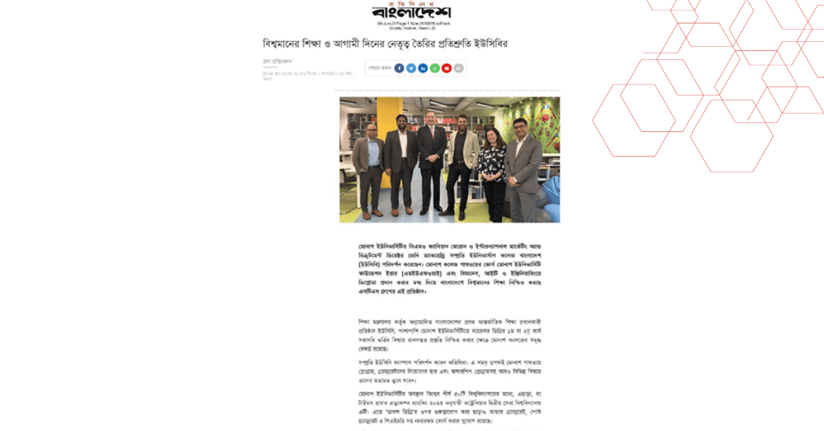 বাংলাদেশে বিশ্বমানের শিক্ষা নিশ্চিত করা এবং আগামী দিনের নেতৃত্ব তৈরির ক্ষেত্রে উল্লেখযোগ্য ভূমিকা রাখতে প্রতিশ্রুতি ইউসিবি, মোনাশ বিশ্ববিদ্যালয়ের উচ্চপদস্থ কর্মকর্তাদের ইউসিবি ক্যাম্পাস পরিদর্শন এ বিষয়টিকেই প্রতিফলিত করে।