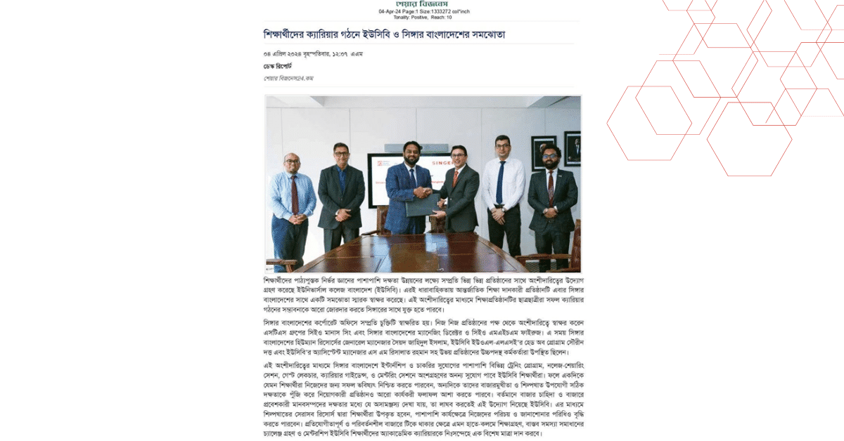 এই অংশীদারিত্বের মাধ্যমে সিঙ্গার বাংলাদেশে ইন্টার্নশিপ ও চাকরির সুযোগের পাশাপাশি বিভিন্ন ট্রেনিং প্রোগ্রাম, নলেজ-শেয়ারিং সেশন, গেস্ট লেকচার, ক্যারিয়ার গাইডেন্স, ও মেন্টরিং সেশনে অংশগ্রহণের অনন্য সুযোগ পাবে ইউসিবি শিক্ষার্থীরা। ফলে একদিকে যেমন শিক্ষার্থীরা নিজেদের জন্য সফল ভবিষ্যৎ নিশ্চিত করতে পারবেন, অন্যদিকে তাদের বাজারমুখীতা ও শিল্পখাত উপযোগী সঠিক দক্ষতাকে পুঁজি করে নিয়োগকারী প্রতিষ্ঠানও আরো কার্যকরী ফলাফল আশা করতে পারবে। বর্তমানে বাজার চাহিদা ও বাজারে প্রবেশকারী মানবসম্পদের দক্ষতার মধ্যে যে অসামঞ্জস্য দেখা যায়, তা লাঘব করতেই এই উদ্যোগ নিয়েছে ইউসিবি। এর মাধ্যমে শিল্পখাতের সেরাসব রিসোর্স দ্বারা শিক্ষার্থীরা উপকৃত হবেন, পাশাপাশি কার্যক্ষেত্রে নিজেদের পরিচয় ও জানাশোনার পরিধিও বৃদ্ধি করতে পারবেন। প্রতিযোগীতাপূর্ণ ও পরিবর্তনশীল বাজারে টিকে থাকার ক্ষেত্রে এমন হাতে-কলমে শিক্ষাগ্রহণ, বাস্তব সমস্যা সমাধানের চ্যালেঞ্জ গ্রহণ ও মেন্টরশিপ ইউসিবি শিক্ষার্থীদের অ্যাকাডেমিক ক্যারিয়ারকে নিঃসন্দেহে এক বিশেষ মাত্রা দান করবে।