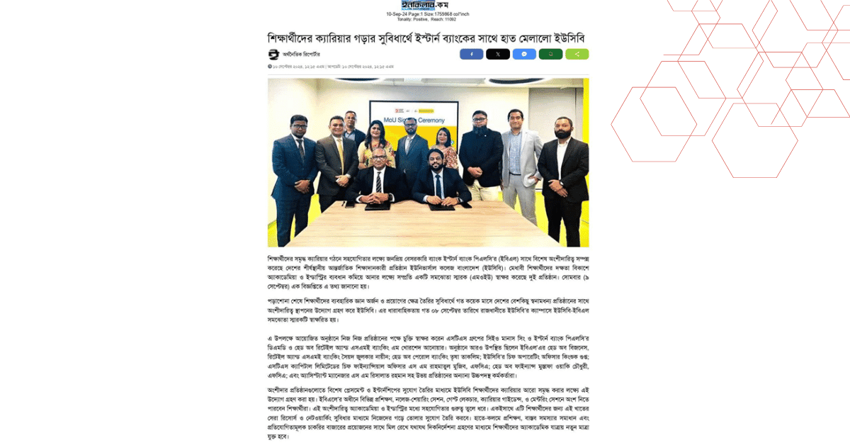 শিক্ষার্থীদের ক্যারিয়ার গড়ার সুবিধার্থে ইস্টার্ন ব্যাংকের সাথে হাত মেলালো ইউসিবি