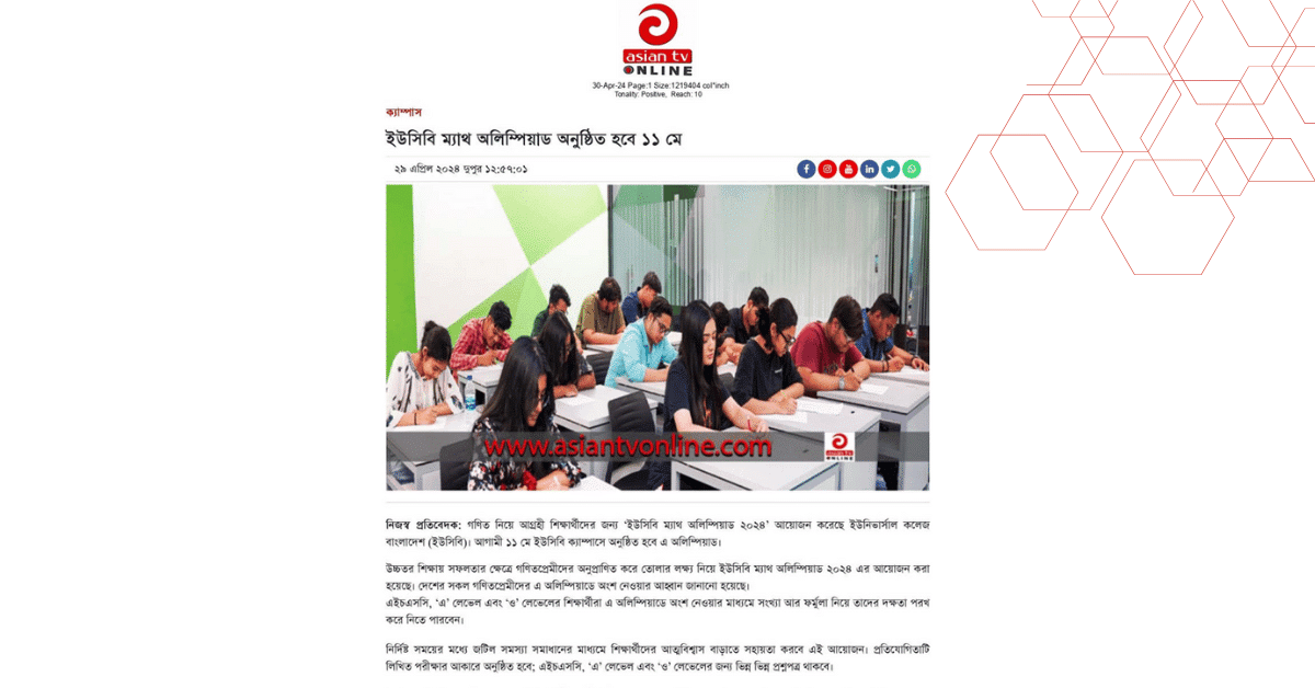 উচ্চতর শিক্ষায় সফলতার ক্ষেত্রে গণিতপ্রেমীদের অনুপ্রাণিত করে তোলার লক্ষ্য নিয়ে ইউসিবি ম্যাথ অলিম্পিয়াড ২০২৪ এর আয়োজন করা হয়েছে। দেশের সকল গণিতপ্রেমীদের এ অলিম্পিয়াডে অংশ নেওয়ার আহ্বান জানানো হয়েছে।