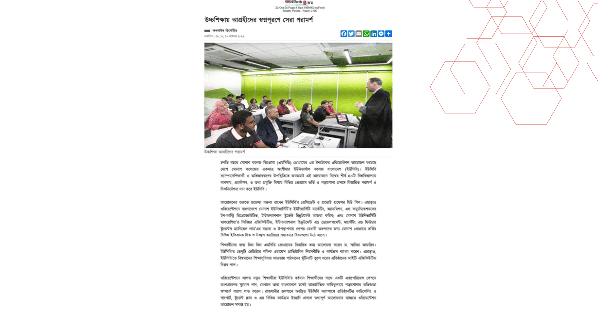 ব্যবসায়, প্রকৌশল, ও তথ্য প্রযুক্তি বিষয়ে মোনাশ অস্ট্রেলিয়া বা মালয়েশিয়াতে পড়াশোনার ক্ষেত্রে এমসিডি প্রোগ্রাম কীভাবে শিক্ষার্থীদের ক্যারিয়ারে এক ধাপ এগিয়ে থাকতে সাহায্য করে – তা বিস্তারিত তুলে ধরেন প্রফেসর হিউ গিল ও সামিয়া ইসলাম। প্রফেসর হিউ’র বক্তব্যে ইউসিবি শিক্ষার্থীদের জন্য প্রযোজ্য বিভিন্ন বৃত্তি সুবিধার কথাও উঠে আসে।