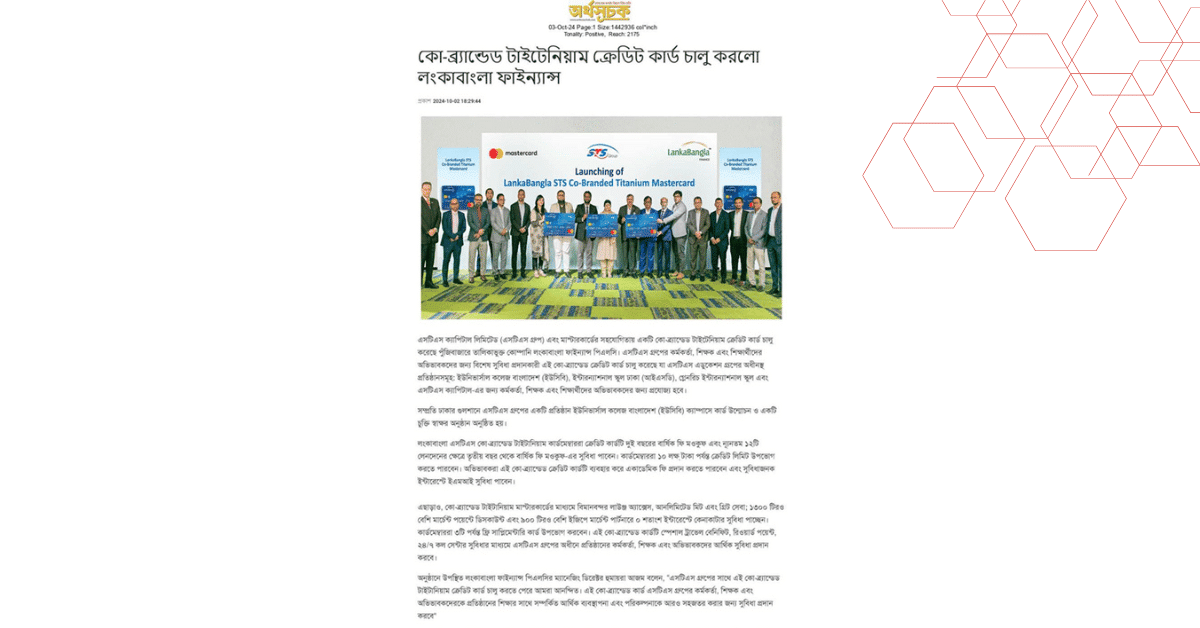 এসটিএস ক্যাপিটাল লিমিটেড (এসটিএস গ্রুপ) এবং মাস্টারকার্ডের সহযোগিতায় একটি কো-ব্র্যান্ডেড টাইটেনিয়াম ক্রেডিট কার্ড চালু করেছে পুঁজিবাজারে তালিকাভুক্ত কোম্পানি লংকাবাংলা ফাইন্যান্স পিএলসি। এসটিএস গ্রুপের কর্মকর্তা, শিক্ষক এবং শিক্ষার্থীদের অভিভাবকদের জন্য বিশেষ সুবিধা প্রদানকারী এই কো-ব্র্যান্ডেড ক্রেডিট কার্ড চালু করেছে যা এসটিএস এডুকেশন গ্রূপের অধীনস্থ প্রতিষ্ঠানসমূহ: ইউনিভার্সাল কলেজ বাংলাদেশ (ইউসিবি), ইন্টারন্যাশনাল স্কুল ঢাকা (আইএসডি), গ্লেনরিচ ইন্টারন্যাশনাল স্কুল এবং এসটিএস ক্যাপিটাল-এর জন্য কর্মকর্তা, শিক্ষক এবং শিক্ষার্থীদের অভিভাবকদের জন্য প্রযোজ্য হবে।