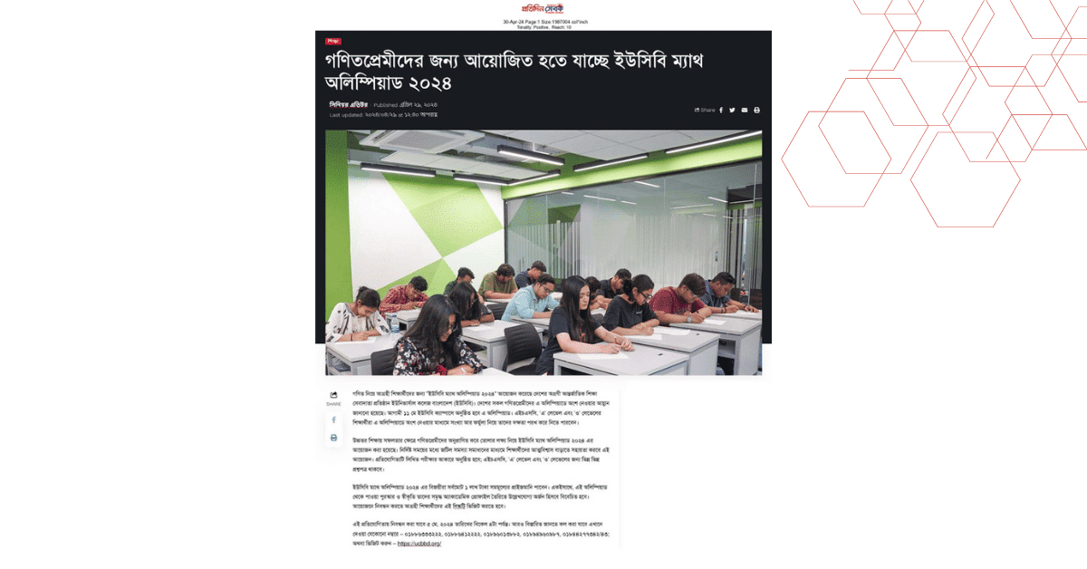 গণিতপ্রেমীদের জন্য আয়োজিত হতে যাচ্ছে ইউসিবি ম্যাথ অলিম্পিয়াড ২০২৪