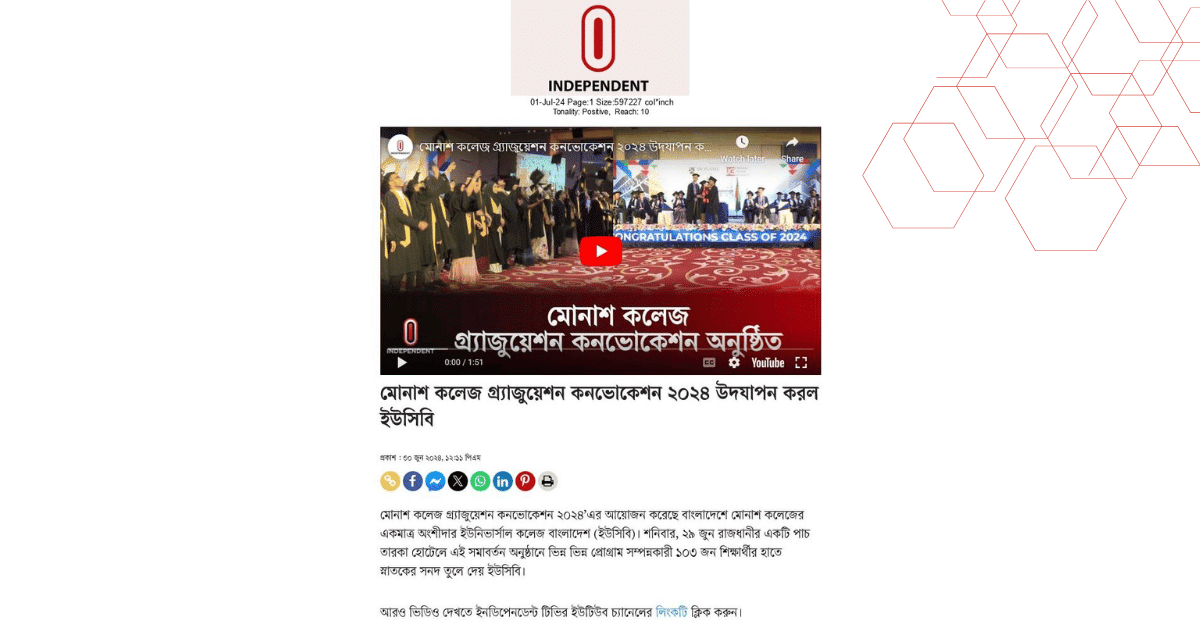 মোনাশ কলেজ গ্র্যাজুয়েশন কনভোকেশন ২০২৪ উদযাপন করল ইউসিবি