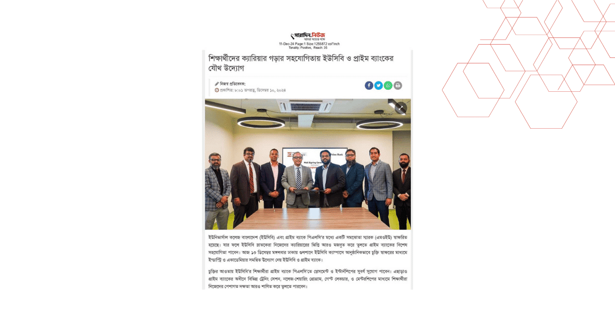 চুক্তির আওতায় ইউসিবি’র শিক্ষার্থীরা প্রাইম ব্যাংক পিএলসি’তে প্লেসমেন্ট ও ইন্টার্নশিপের সুবর্ণ সুযোগ পাবেন। এছাড়াও প্রাইম ব্যাংকের অধীনে বিভিন্ন ট্রেনিং সেশন, নলেজ-শেয়ারিং প্রোগ্রাম, গেস্ট লেকচার, ও মেন্টরশিপের মাধ্যমে শিক্ষার্থীরা নিজেদের পেশাগত দক্ষতা আরও শাণিত করে তুলতে পারবেন।