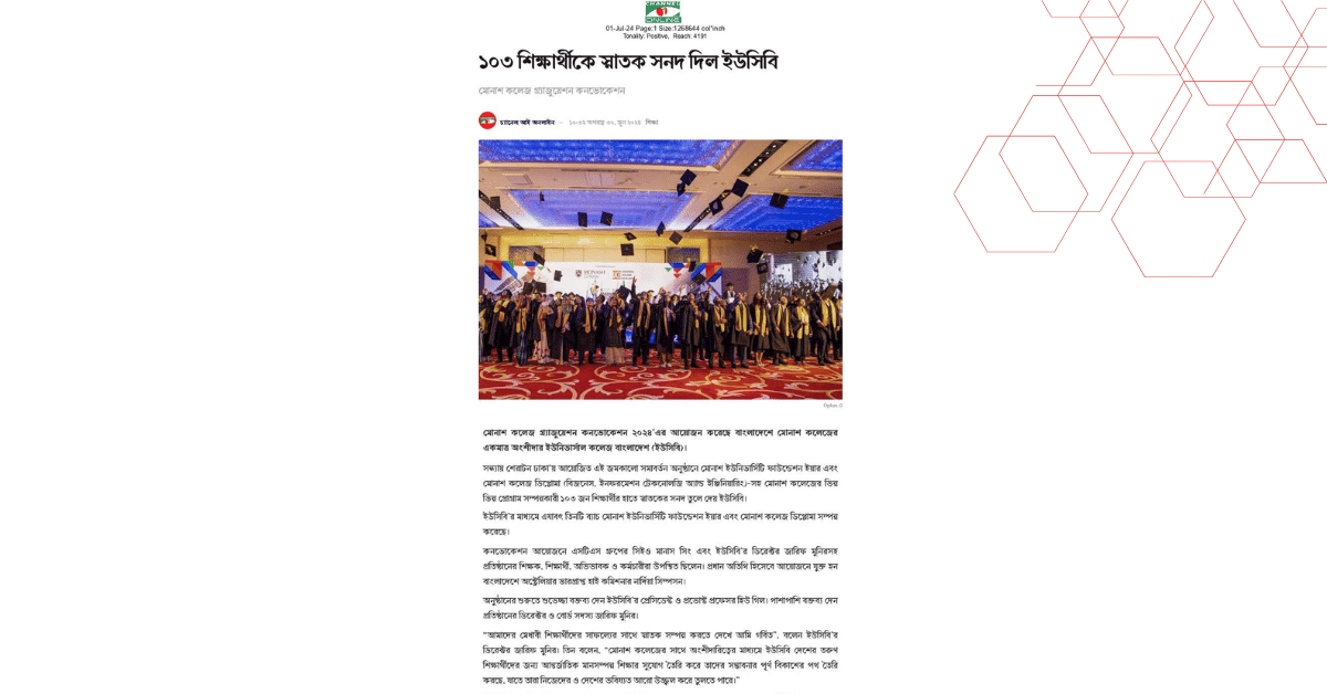 মোনাশ কলেজ গ্র্যাজুয়েশন কনভোকেশন ২০২৪’এর আয়োজন করেছে বাংলাদেশে মোনাশ কলেজের একমাত্র অংশীদার ইউনিভার্সাল কলেজ বাংলাদেশ (ইউসিবি)।